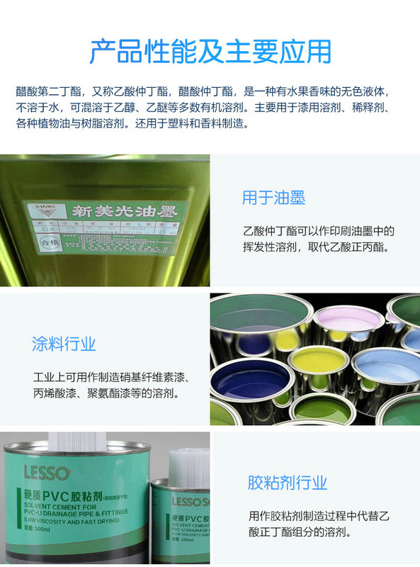 1.化學(xué)性質(zhì):和乙酸丁酯相似。加熱至500℃時(shí)分解成1-丁烯、2-丁烯、乙烯和丙烯。將乙酸仲丁酯在氮?dú)饬髦杏?60~473℃通過(guò)玻璃棉時(shí),生成56% 1-丁烯,43% 2-丁烯及1%丙烯。在氧化釷存在下加熱至380℃,分解成氫,二氧化碳、丁烯、仲丁醇和丙酮等。乙酸仲丁酯的水解速度較小。室溫下在稀的醇溶液中發(fā)生氨解時(shí),120小時(shí)有20%轉(zhuǎn)變成酰胺。在三氟化硼存在下與苯反應(yīng)生成仲丁基苯。進(jìn)行光氯化反應(yīng)時(shí),生成氯代丁基乙酸酯。其中1-甲基-2氯丙基乙酸酯占66%,其他異構(gòu)體占34%。